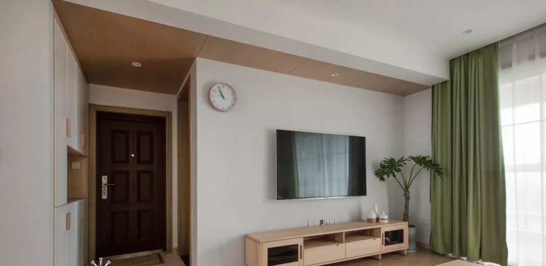 ▲日式风格直接用大白墙做电视背景,然后通过原木色的电视柜和其他家具配合装饰。