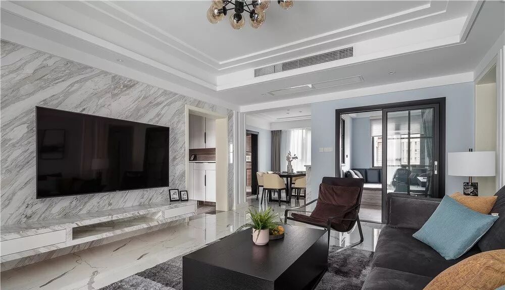 ▲大理石:大理石做电视墙,高端大气上档次,妥妥的高级感。