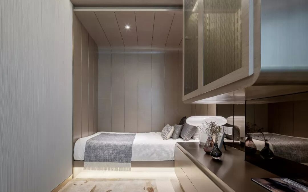 推窗见海的小房间,采用玻璃反射的作用,拓展视觉空间,窗外海阔天空,室内自然舒展。