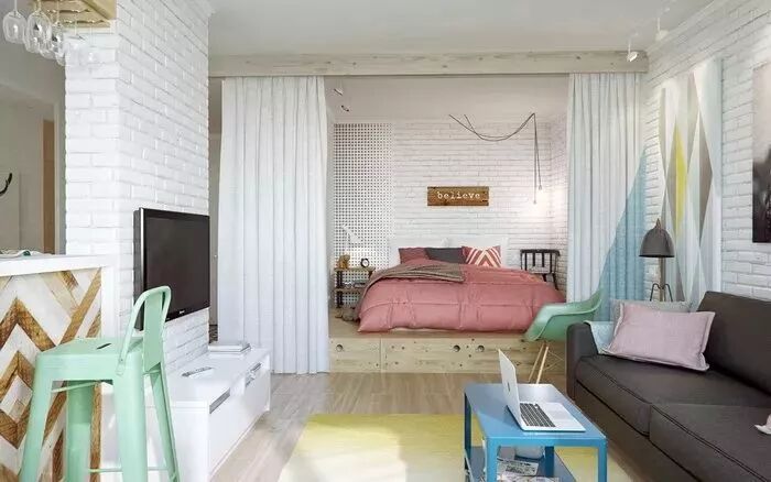 小户型装修时不宜运用硬质隔断,一则增添工程难度,二则空间的严格界线和硬质隔断自身的体积,都会令空间变得狭隘。