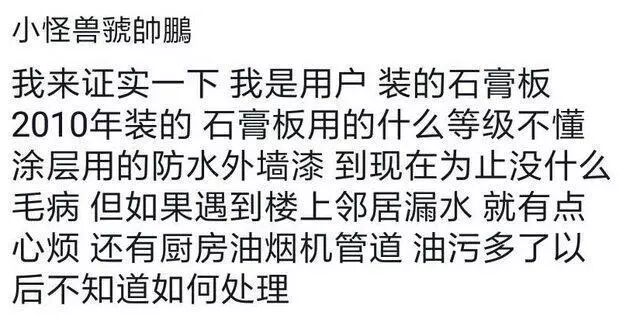 但是他忽略了一个问题,那就是实际施工环境和实验环境的区别。在实际施工中,工人基本做不到石膏板两面+四周都给你刷上防水材料,一般只会刷看得到的那面,加钱也做不到。