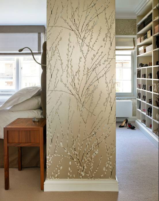 进门后如果两侧空间允许的话,可以借助这个进了卧室门后的空间,把这个空间的两侧或侧边利用起来,做成一个小小的衣帽间,一进卧室就感受到满满的整洁舒适;
