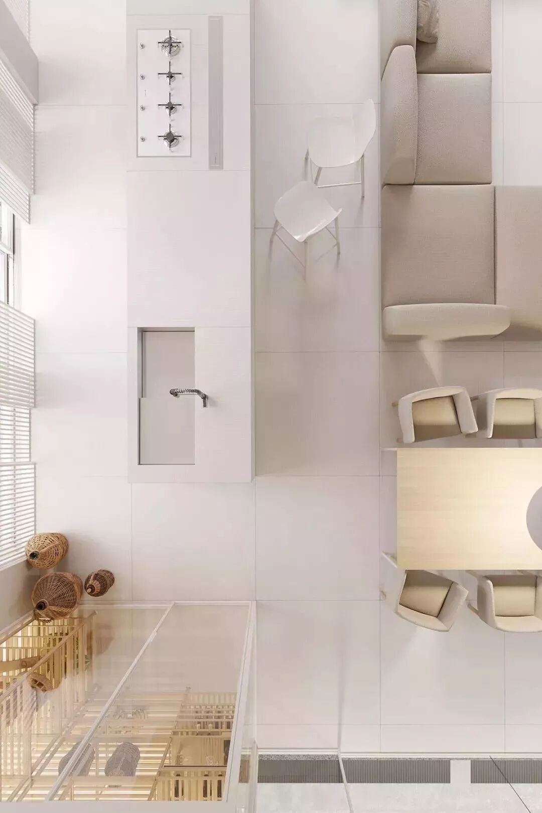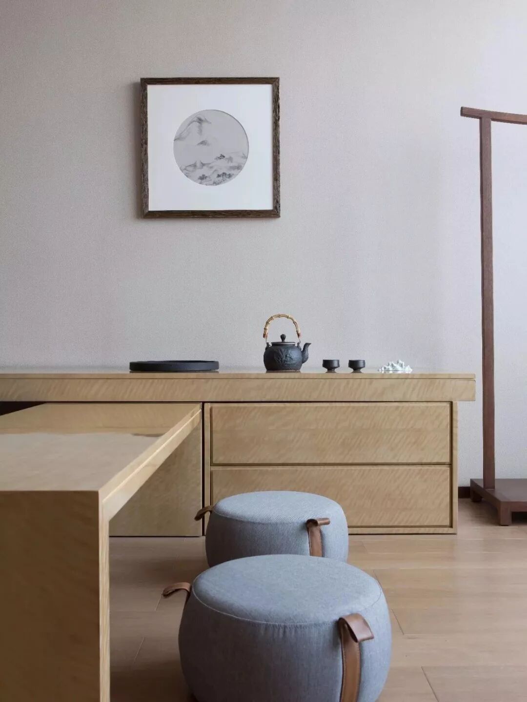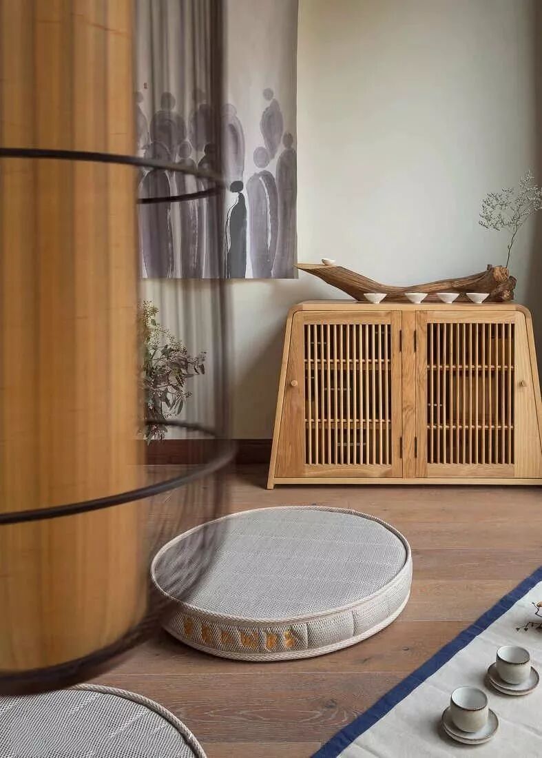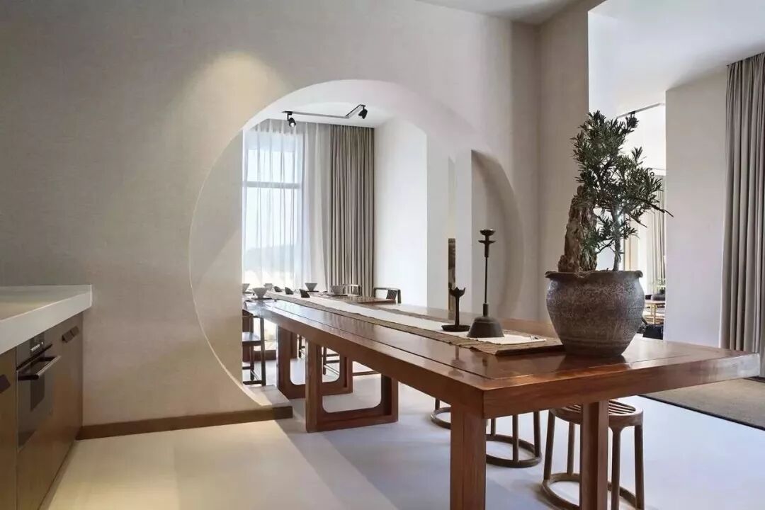 佛家讲究禁欲,克制得自由,佛系家居亦如此。只用最纯粹、洗练的线条,勾勒整个空间,陈设上适度空旷,视觉上相对简洁,这是一种克制之美;而场所简单质朴,能够与不同的风格元素相契合,提供了随心所欲增减器物的机会,这是可贵的自由。