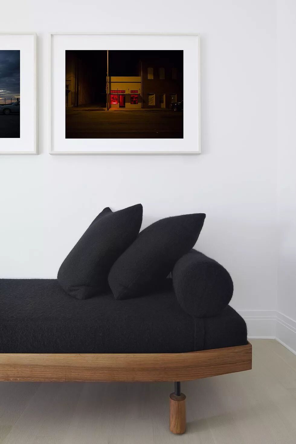 在这里,马克坎宁安公司使用沃尔夫冈蒂尔曼斯的生动照片为中性生活空间带来色彩。
