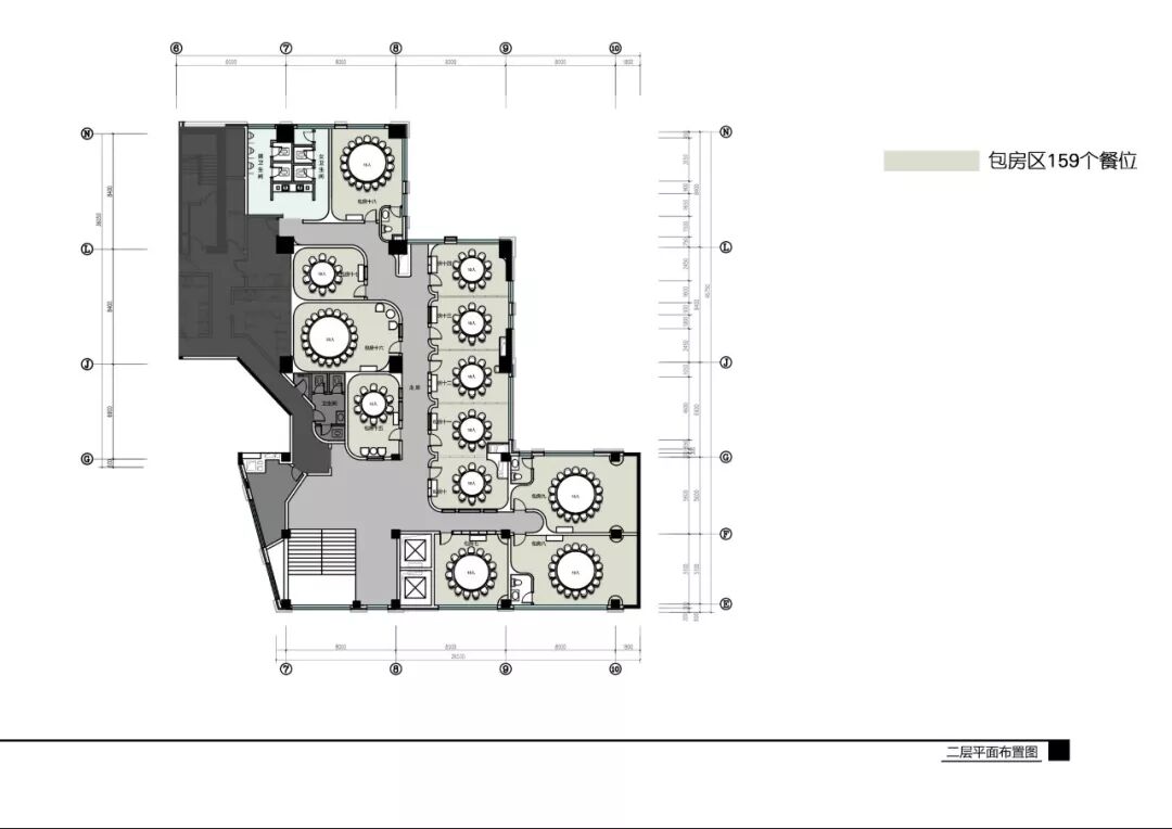 原始平面并不规范,进入具有欢迎仪式的大门,来到童话小镇一般的“花海广场”,左侧具有最好视野和景观的部分是“梦幻森林”,转向右侧,散台区被集中打造成“童话小镇”,穿过一段“小径”,视野豁然开朗,木、石造型包房隐于“林间”。