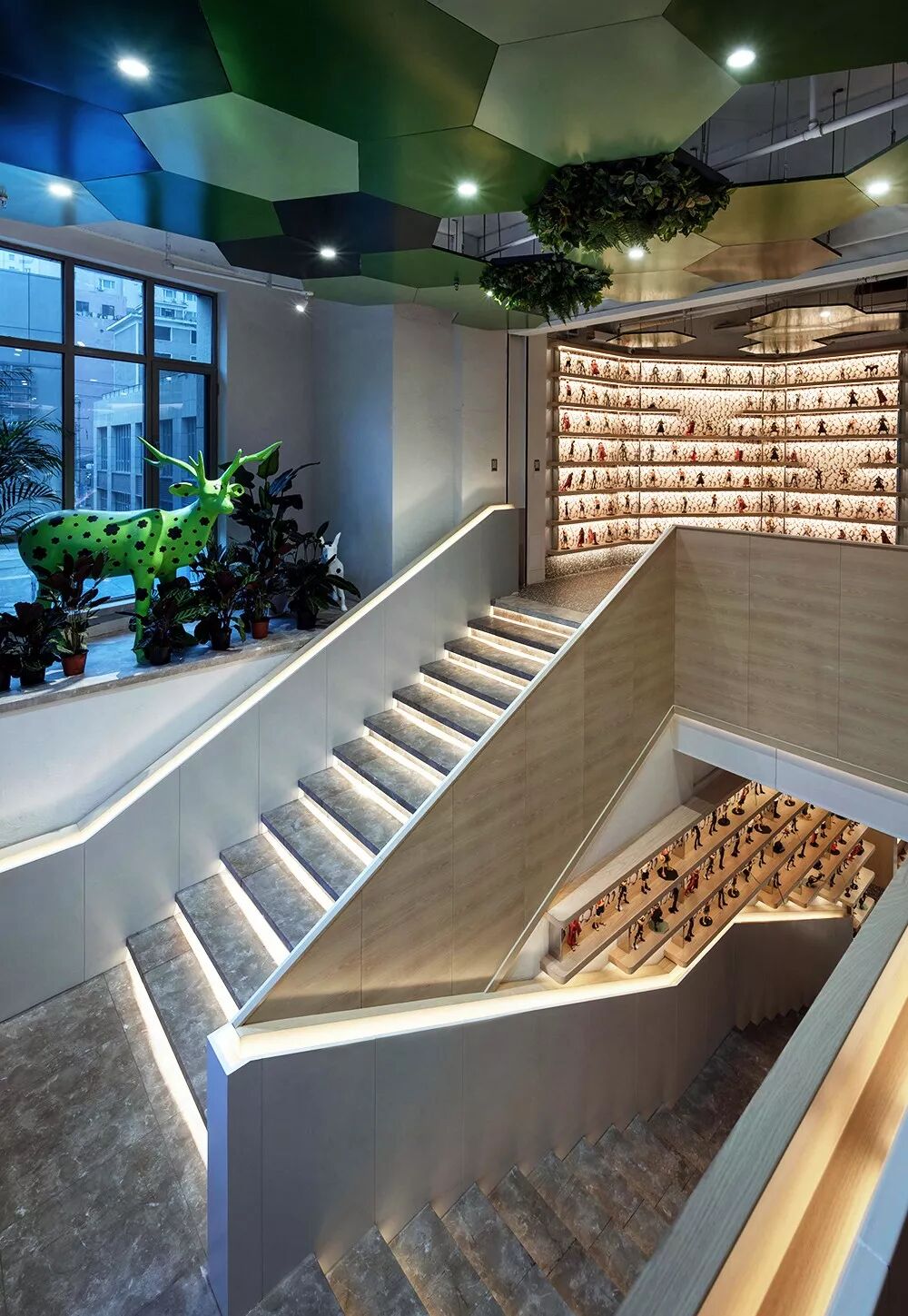 楼梯背景墙是一整面海贼王模型的天下,收藏展示最心爱的玩具,这是一种追求幸福感的能力,来自日常最平凡的快乐。