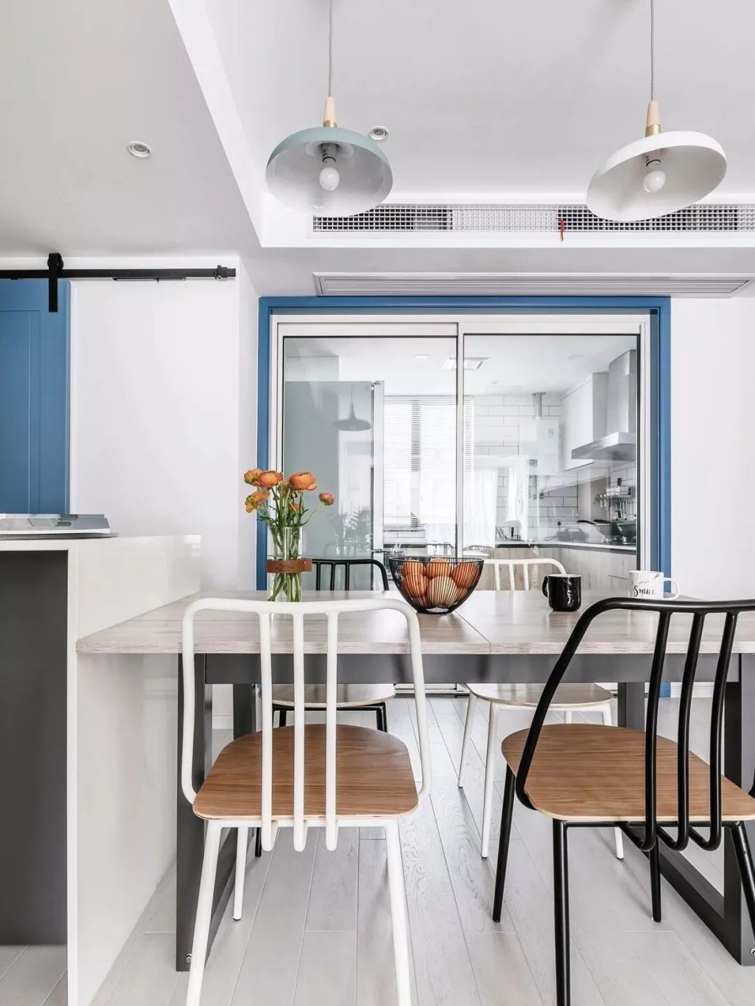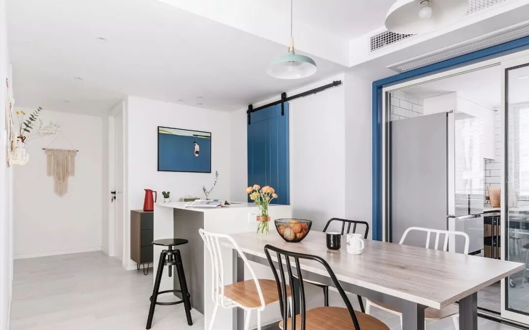 ▲ 蓝白组合的谷仓门,给了生活一丝小惊喜,从视觉上带来了平衡