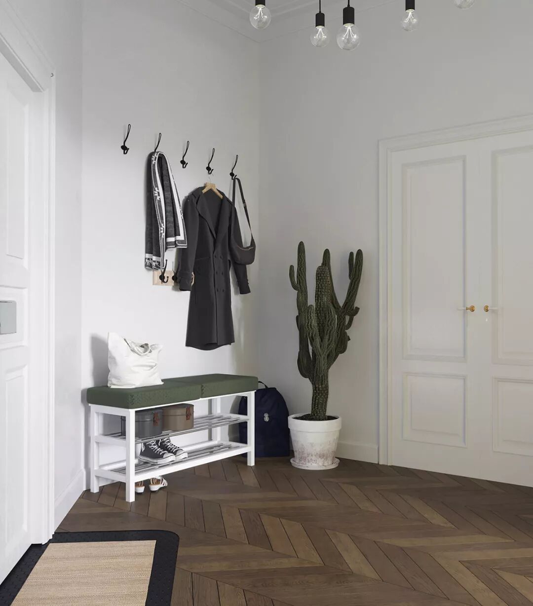 鞋凳和一组墙钩使得入口通道井然有序。