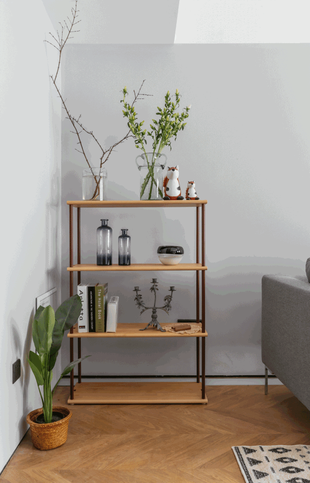 女主热爱旅行,玩转全球的她当然少不了买买买。半开放的层板和储物柜,让旅行过程中淘到的宝物们有了妥帖的安排。