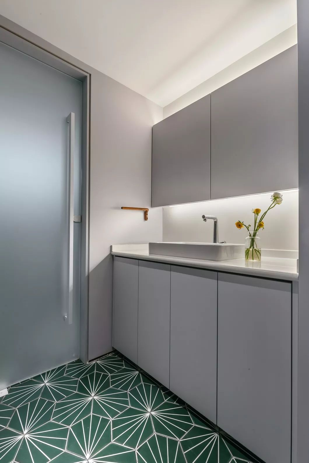 隐藏镜子的处理为每一位爱美的女性贴心地增加了存放洁面和护肤品的空间。舍去过多的装饰,只延续主调色彩,让整体空间舒适整洁、纤尘不染。将颜值、功能性与创造性三者结合,少即是多。