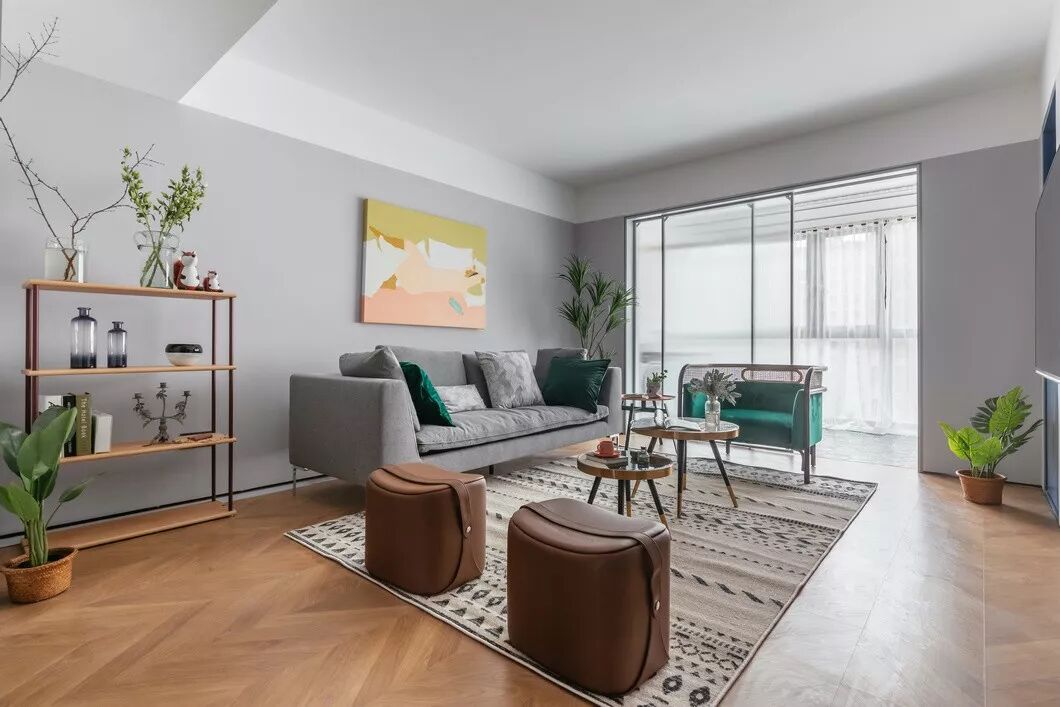 北欧风中最不容易出错的当然是灰色沙发!亚麻材质透气性、舒适度都非常可靠,价格也适中,是年轻人装饰家居环境的一个不错选择!