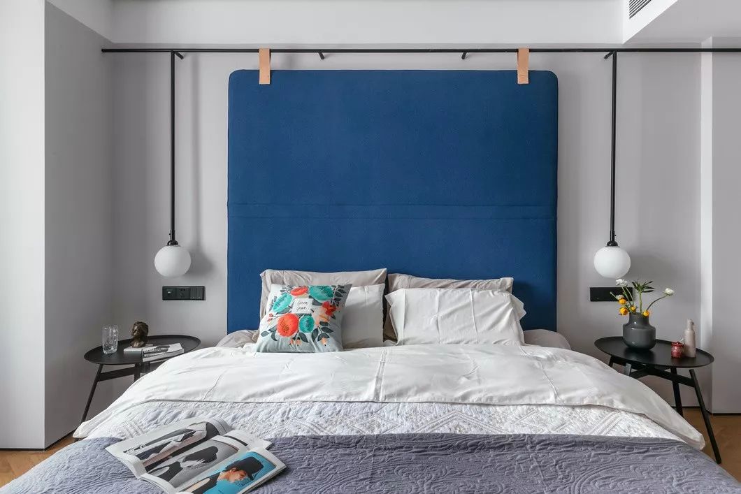 床头做了特别的硬包处理,绒布材质更易于日常打理,而且价格实惠。