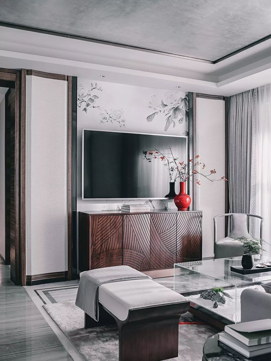 木心先生笔下所写的往日情怀,深深的感动了我们。一处山水景色,一杯茶,一本书,去繁就简,我们用简洁的现代设计手法描绘空灵之感,让生活回归本真的模样,诚恳、真挚,更深切。