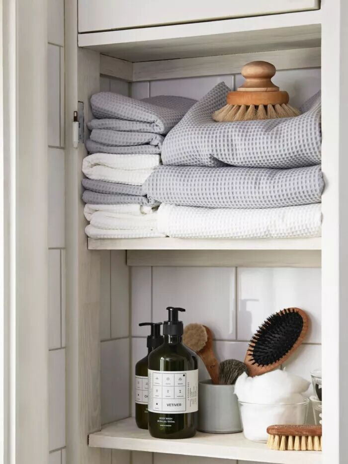 整齐堆叠的毛巾,柜子里精致产品,这些细节也会对假期感觉产生重大影响,也可以在一个小花瓶里面加一朵花。