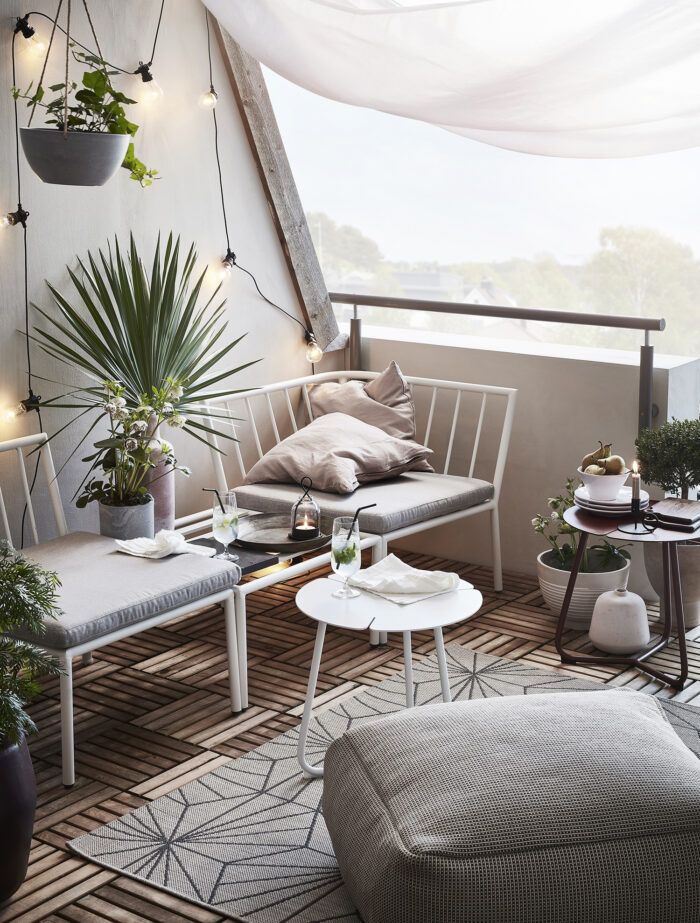 通过用垫子,地毯和大量照明装饰,在阳台延长夏季夜晚。在一些座位边布置一些绿植,仿佛坐在大自然中。