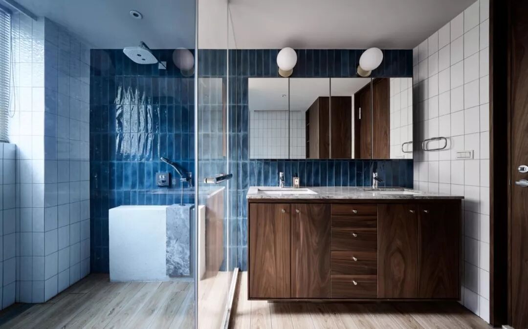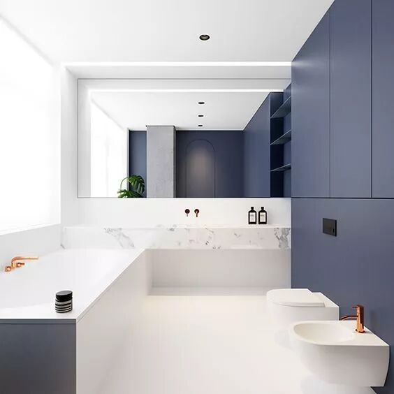 蓝色,是一种冷静而深邃的颜色,它容易让人联想到大海、天空、宇宙等一切神秘而浩瀚的东西。将不同的蓝色运用到卫生间中,可以产生不同的视觉效果。