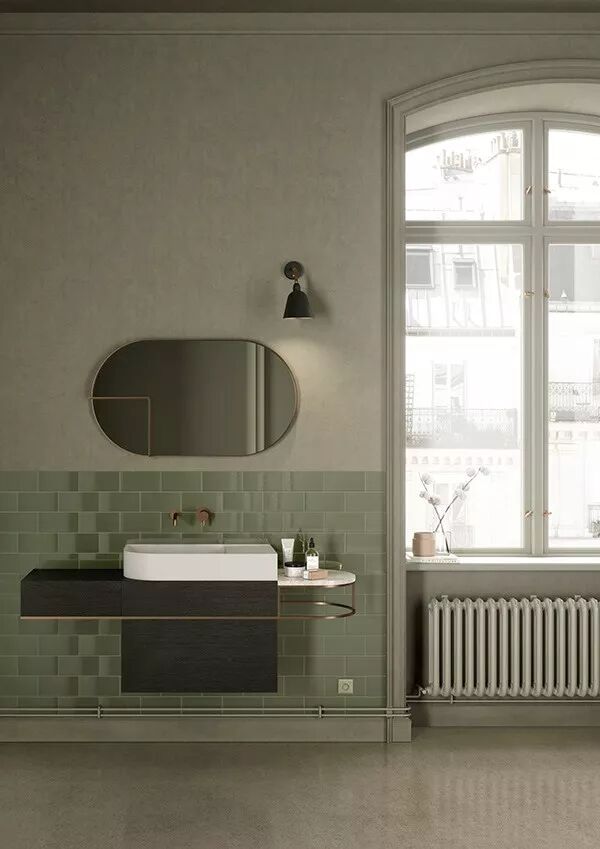 绿色清爽自然,非常养眼,它带着与生俱来的活力与朝气,使得狭窄的空间瞬间拥有一丝治愈的味道,所以常常美得令人眼前一亮......即便运用在较为私密的卫生间里,也难掩它的小清新魅力,随时随地给人一种赏心悦目的感觉。
