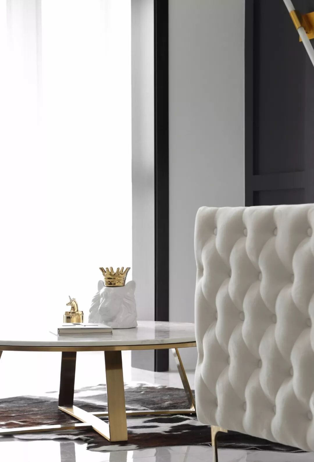 △亮面茶几聚焦着视线,巧妙地把握空间的低奢节奏。