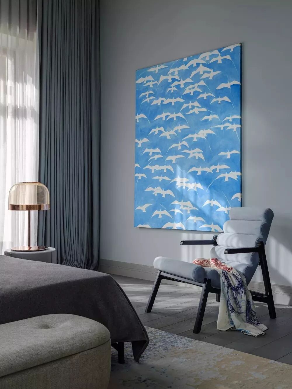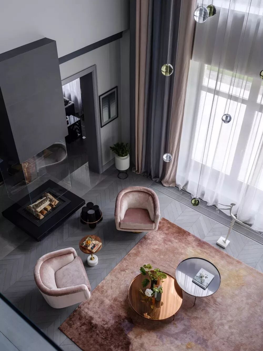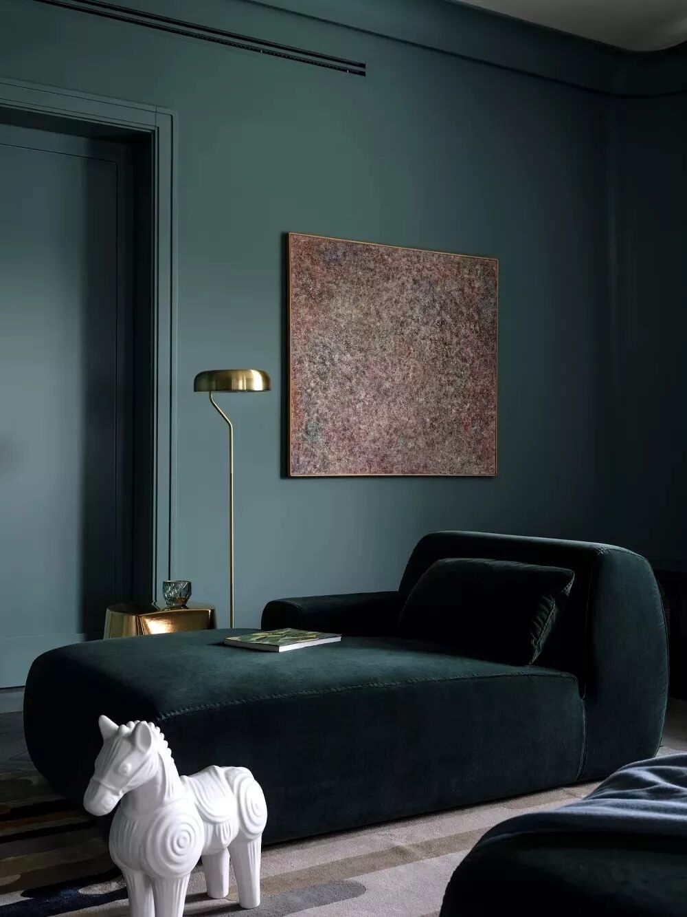 它将艺术美学与生活时尚完美融合,虽简约而不简单,低调、内敛之中又带有一丝优雅和浪漫,有时候,大胆地使用灰紫色、雾霾蓝或赭石色,再搭配丝绒质感的沙发、艺术摆件及灯饰加以衬托,都能在不经意间彰显出主人的个性品味。