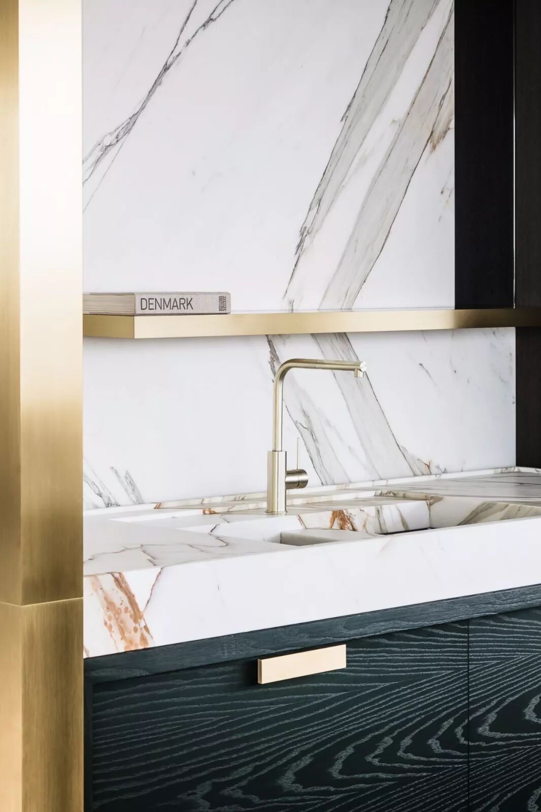 金属和大理石这两种自带奢华气质的设计元素,几乎是轻奢风家居中不可或缺的存在。
