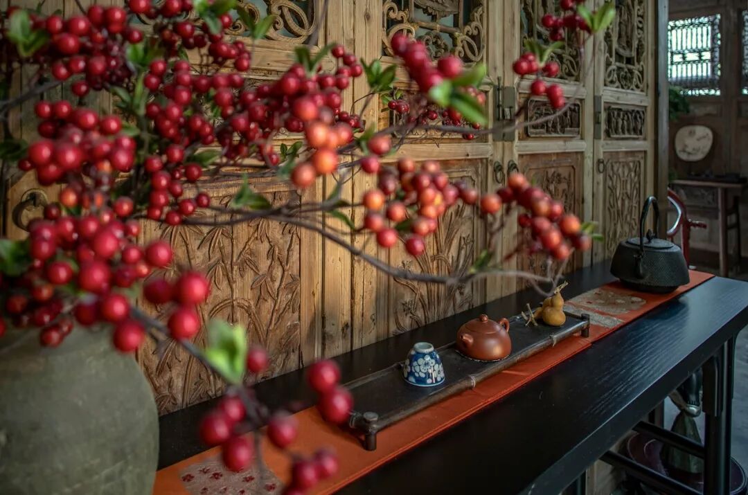 匾下陶瓷与茶具气定神闲,拉开小可堂的午后,花至半开,茶饮半盏,一席茶一暮烟,熏香迟暮,花馔青灯。