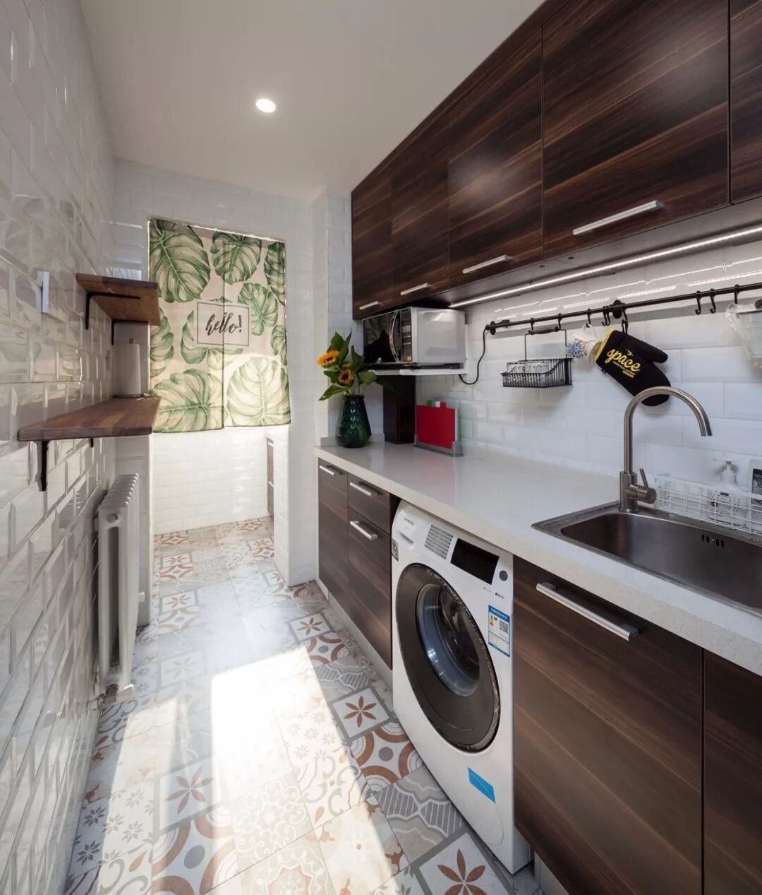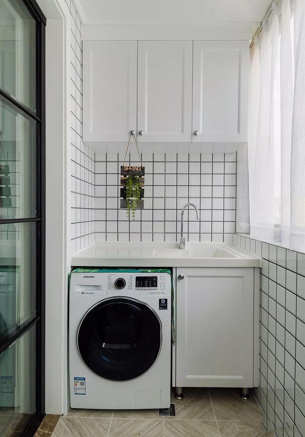 ③我们还可以将洗衣机隐藏在柜体里,越是小面积的空间,越是简洁当道,洗衣机完全可以藏起来。