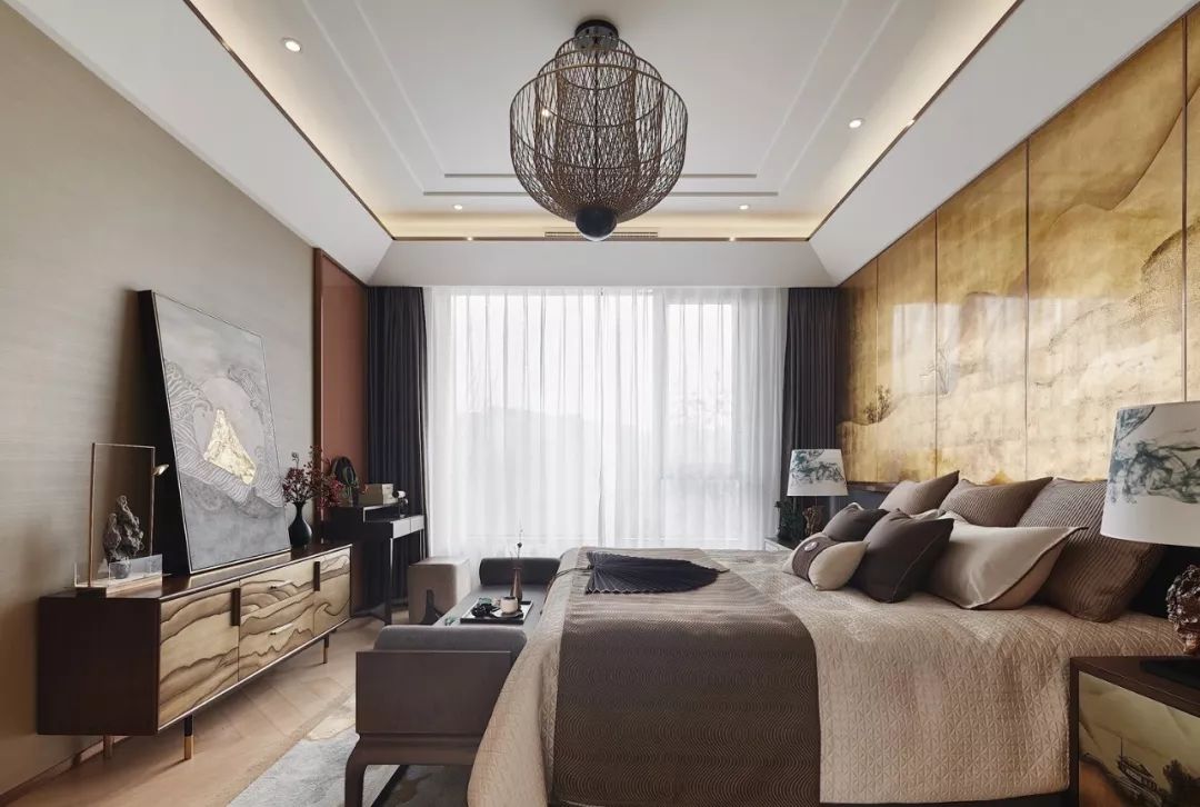 要想新中式与轻奢完美融合,力求在继承和发扬传统文化的基础上,打造出一个简约大气的居住氛围。它不仅体现了中国传统美学精神,而且在设计上删繁就简,很多喜爱中国文化的人们深深着迷。