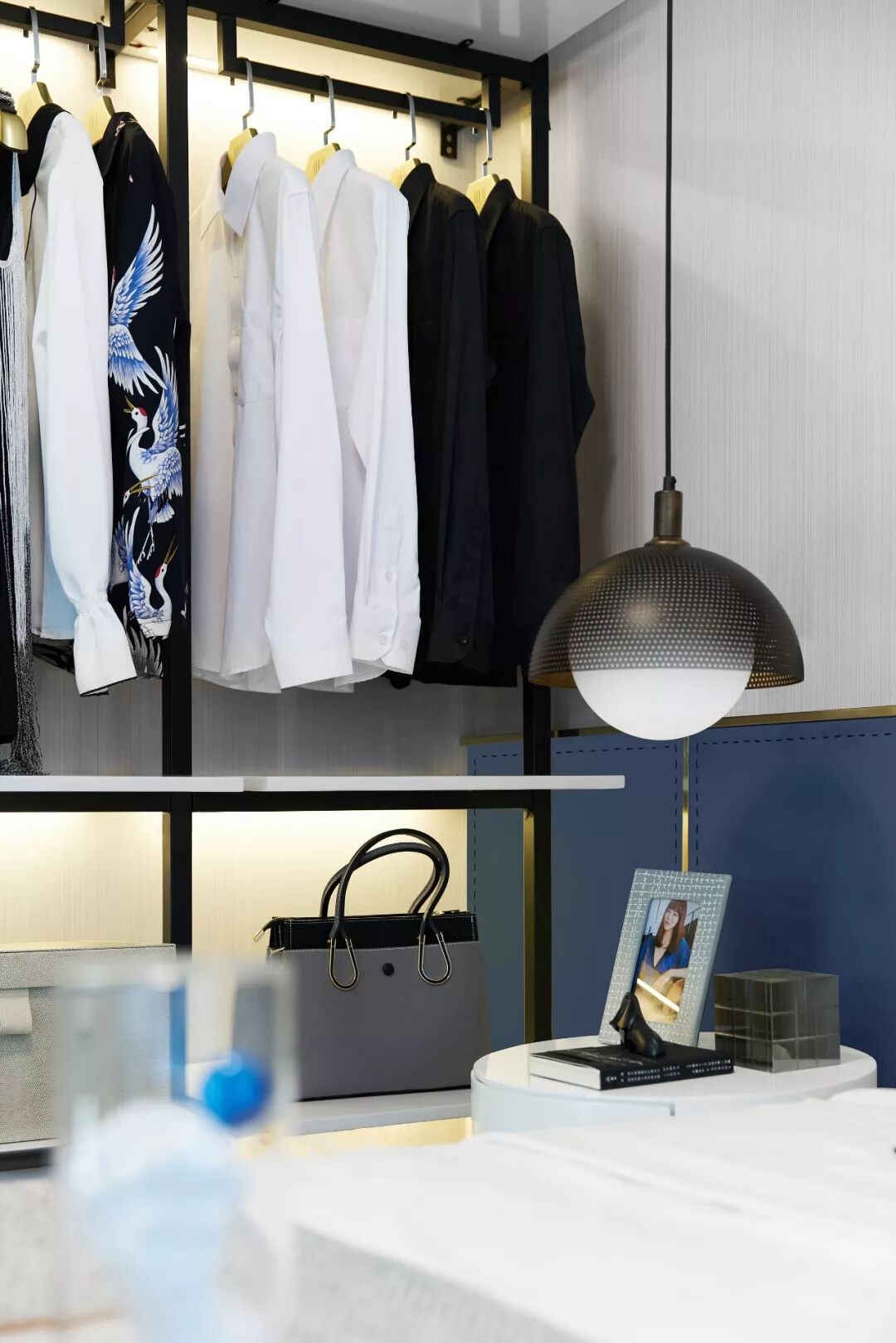 客卧将大色块与不同纹理的图案调和得相得益彰,舒适简洁。把金属光泽蔓延到了这里,与客厅风格遥相呼应。