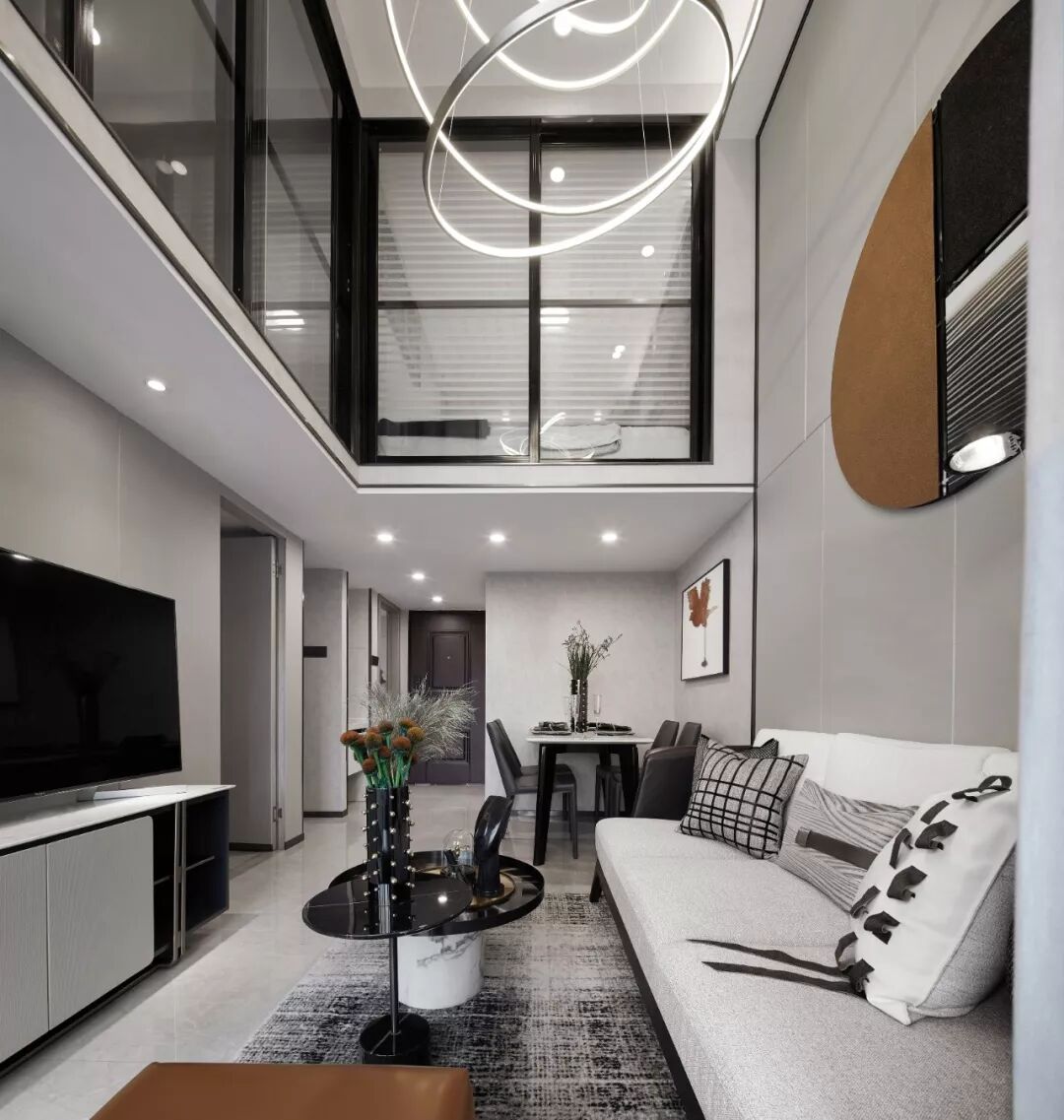 LOFT式的高挑开敞空间打造出简洁现代的质感,勾勒出一个科技感与舒适感并存的美好轮廓。