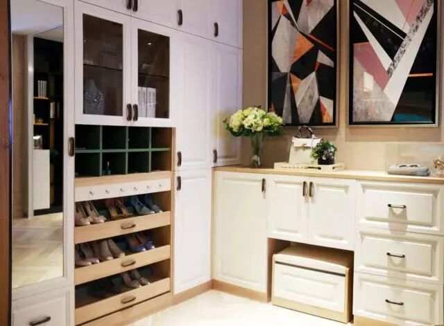 避坑指南:对于家有老人小孩和爱穿高跟鞋的女士来说,入户鞋柜一定要有个坐凳。其实嵌入式坐凳既不占空间,而且十分方便。当然要是能设计个穿衣镜是再好不过的了。