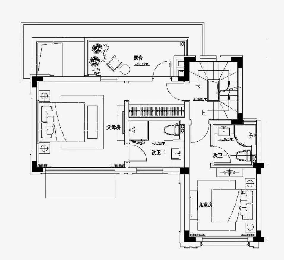 父母房的设计工整古朴,典雅幽静。床头背景取自古韵飞鸟图,借由源源不断的艺术气息,将室内生机瞬间焕发。