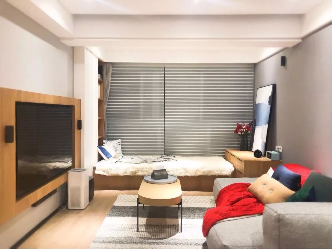 小尺寸的茶几就能满足日常居住的功能,保持生活动线流畅,也能方面腾空客厅成为宽敞舒适的活动区。