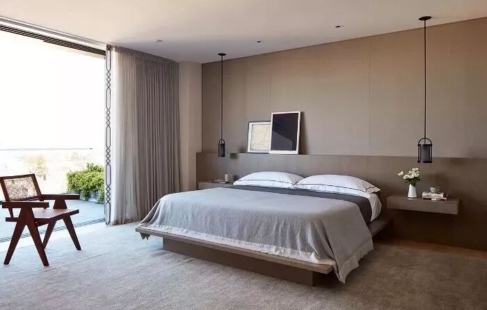 远离任何噱头,尤其是在装饰卧室时,适当添加有趣的细节,但不要过分。添加一些有趣的东西:比如柚木扶手椅、悬挂式秋千,或者厚重的植绒窗帘,让极简主义的房间感觉温暖。