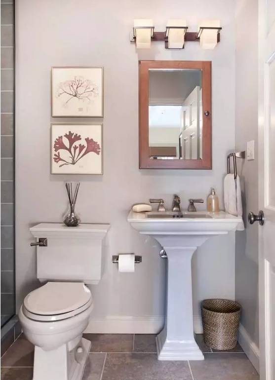 28. 卫生间尽量干湿分区,如果面积小用柱盆就好,最好设置个防水的小柜子收纳杂物