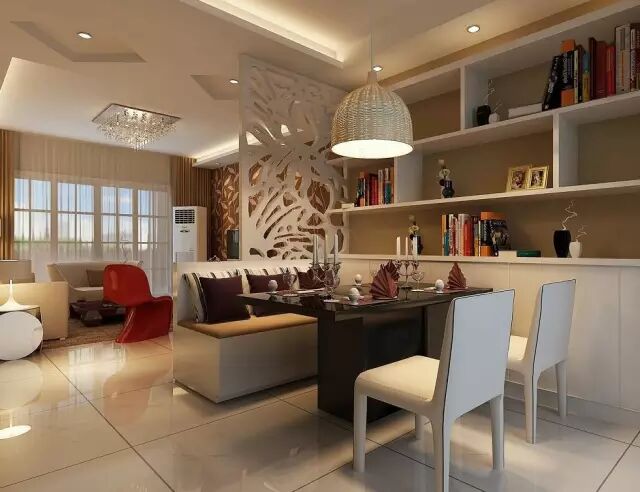 2、增加收纳空间,特别是对空间小的户型来说,收纳显得尤其重要。而卡座底部恰好可以镂空做收纳柜完美的解决了收纳不足的问题;