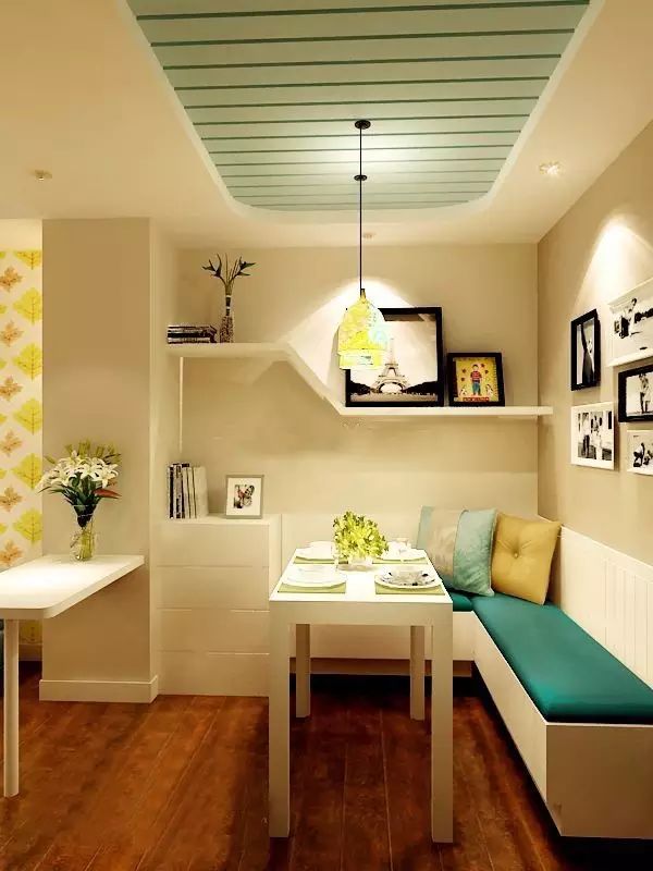对于偏小户型,节假日亲戚、朋友来聚聚餐,餐厅小的问题就出现了,很多人会选择往客厅茶几代替,往往忽略了从餐厅本身进行改造!