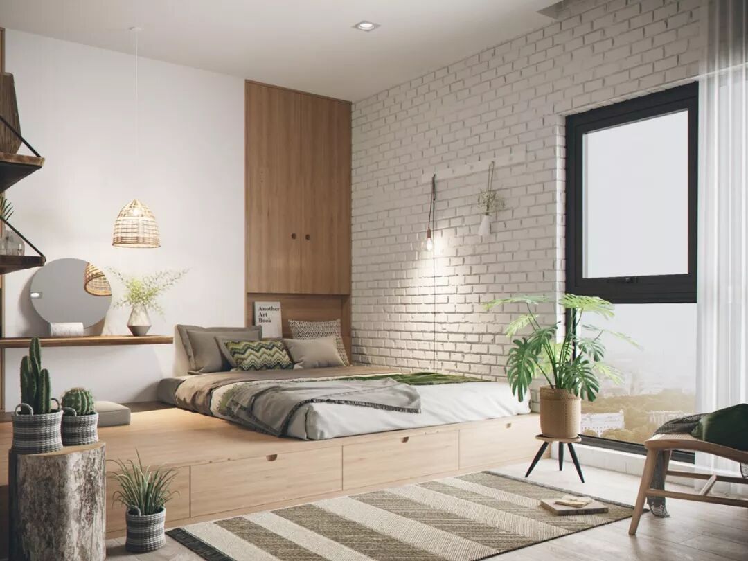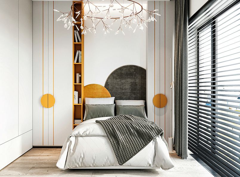 卧室面积不大,可以选择比较灵巧的床头收纳柜,或者把床与床头柜融为一体,既可以做简单的收纳,也可以装饰点缀,避免传统笨重床头柜既占空间,又影响整体空间的视觉效果。