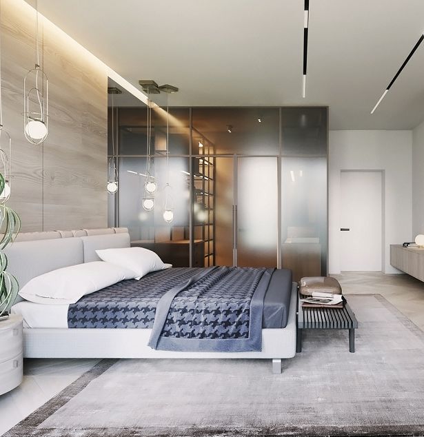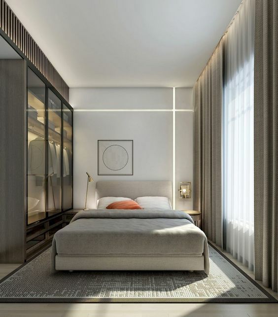 想让卧室看起来比较大,可以用视觉延伸法,所以我们在装修设计卧室的时候一定要拉伸空间的高度,比如说同样是衣柜,如果把它做到顶,不仅能让空间看起来更立体宽敞,减少地面的占有空间,还能让空间更具整体性,最重要的是能让卧室的收纳空间也大增。