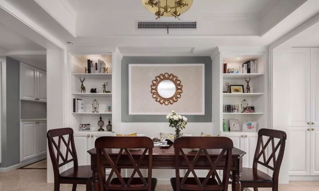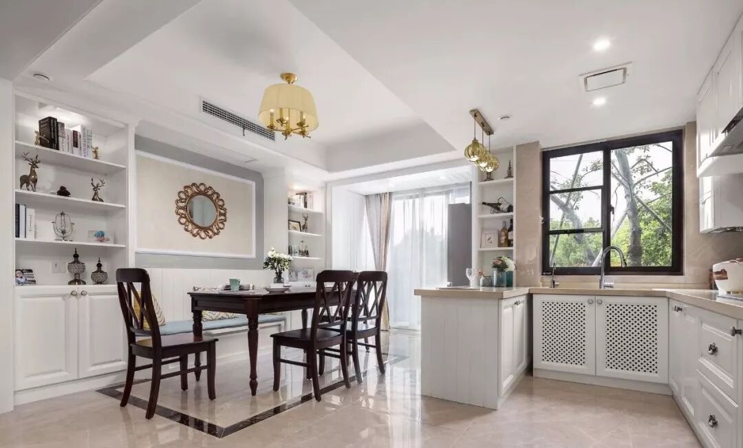 ▲ 餐厅利用卡座设计,释放过道的空间,左右设计餐边柜既实用也需要考虑到美观性