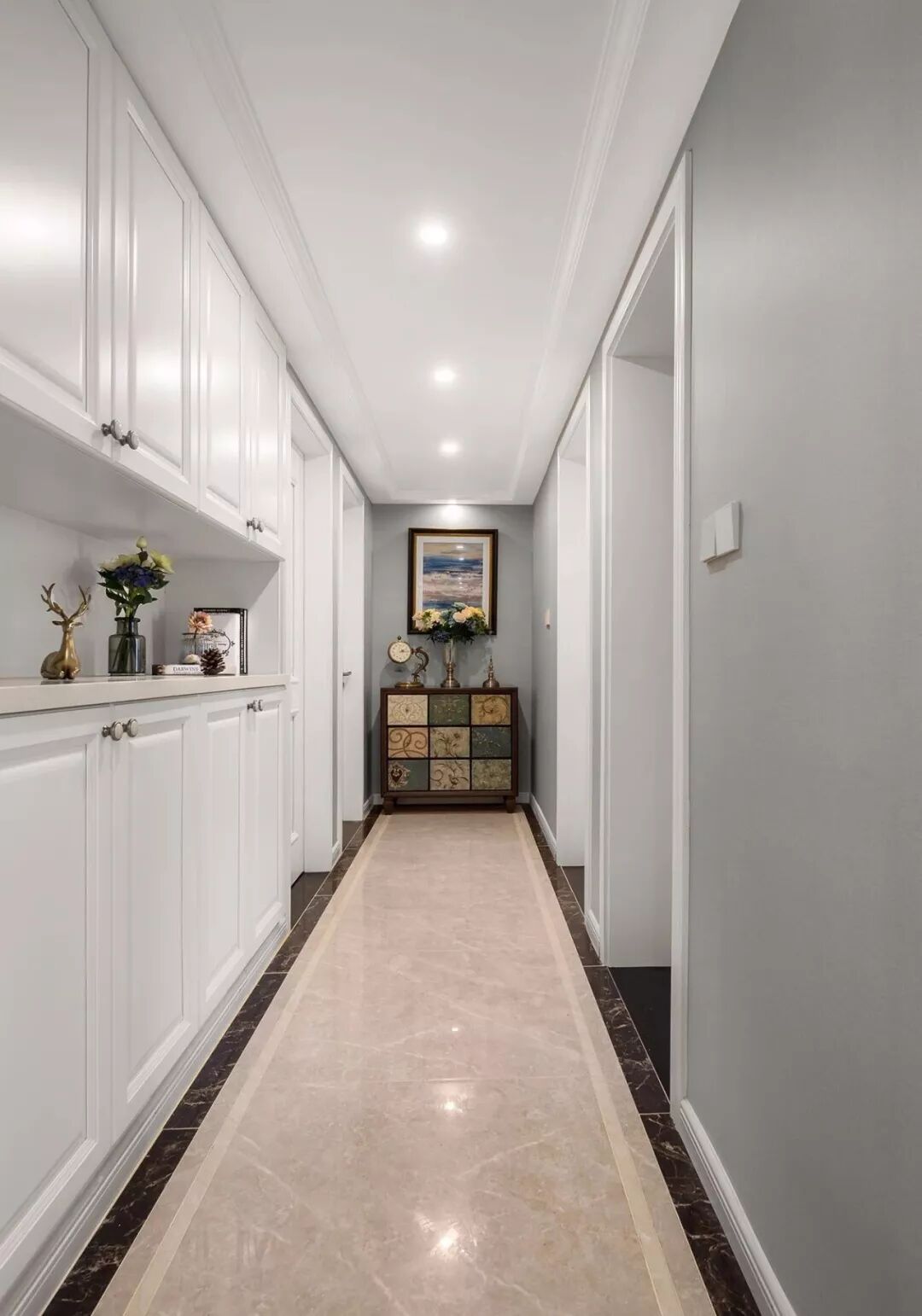 ▲ 过道收纳柜,地柜和吊柜的组合形式不会使空间太压抑