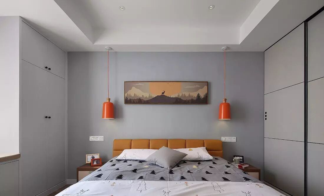 卧室除了主灯之外,也可以在床的上方安装一对壁灯,或者在两边的床头柜各放一盏台灯,方便睡前关灯。