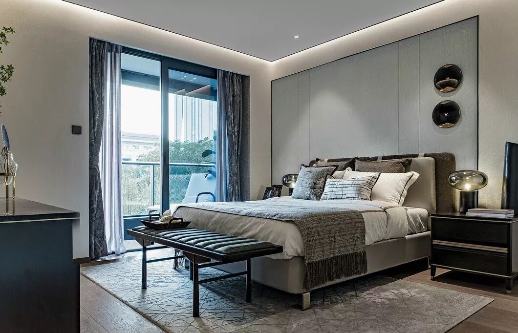 主人床采用的编织纹皮革面料被处理得极其柔软,加上丝绸与绒面相间的床褥,搭建生活的品质感。精致的斗柜、椅凳、饰品架、化妆镜、床头灯,都是经过设计师的细腻比较而臻选出来的,她尝试在每个细微之处把握好生活与美学、日常与神性之间的微妙平衡。