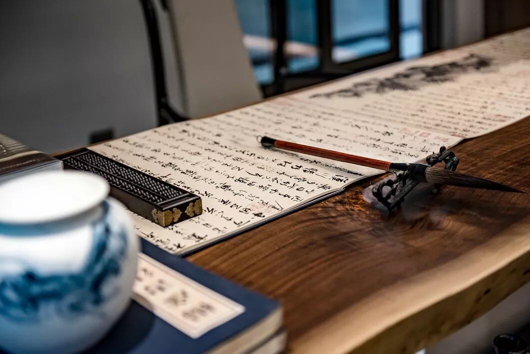 空间的设计以山脉与湖泊的绵延幽静塑造空间意景,透着东方风雅的文士情怀。置物架上的旧报纸、茶叶罐以及失准的天平装点出一片趣致,这些微小的物件随着设计师的感知与设计手法的映照被重新发现并且放大,显露出其专属的、独特的意味与美感。