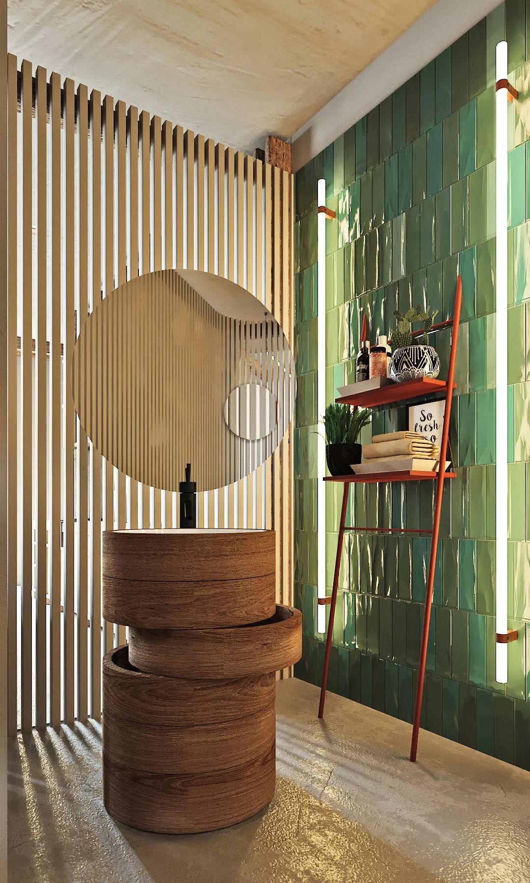 条形瓷砖竖向铺贴