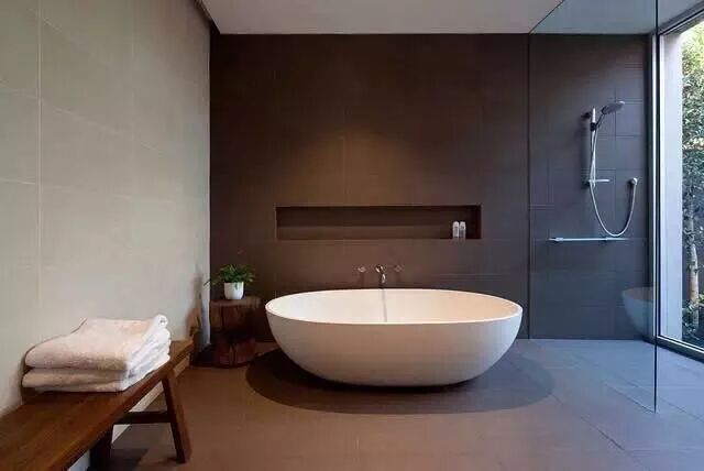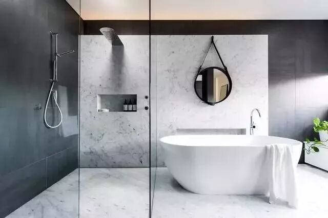 如果你家有两个浴室,一个淋浴一个泡澡,那自然便是最好的安排。如果只有一个,则还是要把淋浴区和浴缸区分开。浴缸+淋浴房合为一体的设计,就实用性而言,一点都不友好。