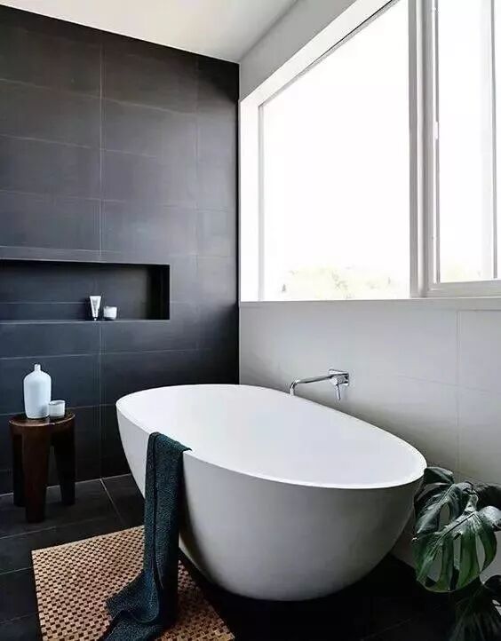 下面这组设计,即使躺在浴缸里拿东西也会很方便,壁龛不会喧宾夺主,低调而优雅。