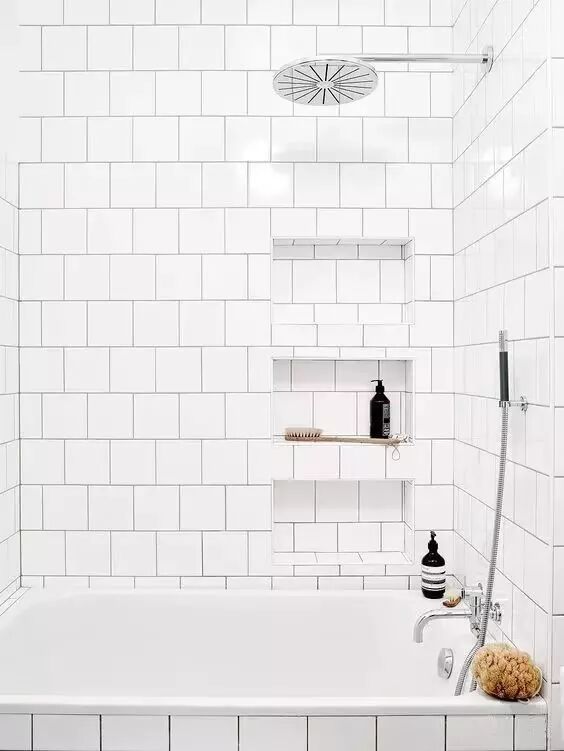 壁龛的设计不像常见的置物架结构,壁龛是在卫生间的墙面上进行凹陷式的打造,不会在墙面上突出占用空间。只要在墙面上挖取一个置物格的结构,即可摆放各种生活用品,轻轻松松解决洗发水沐浴露等收纳问题。