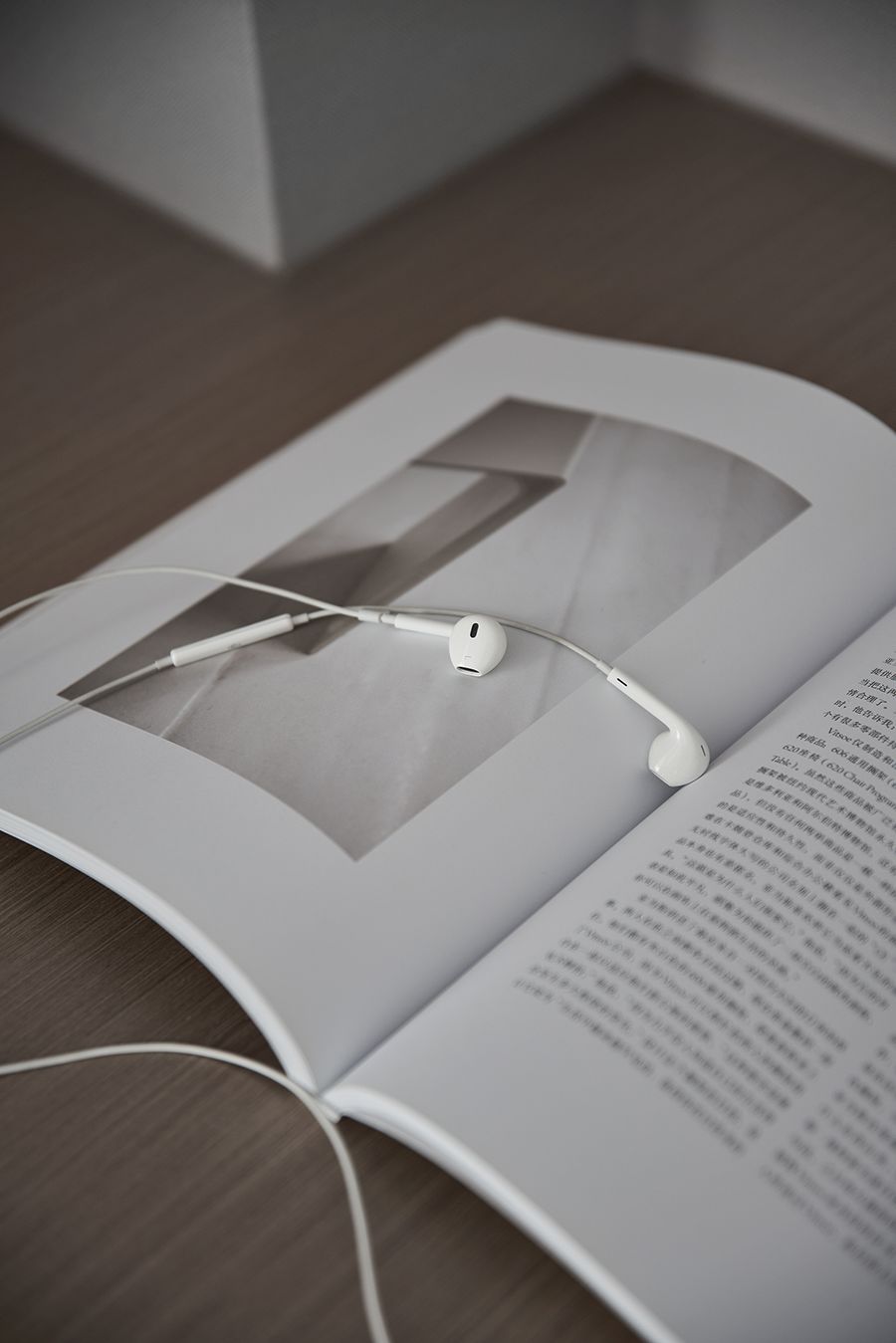 整体空间以直线线条,白色,黑色建筑体块,交扣组成,60%的白色面铺满整个空间,运用不同材质,呈现不同光度的白,37%的灰色和黑色打底与白色互称对比,余下3%灵动黄色作点缀。