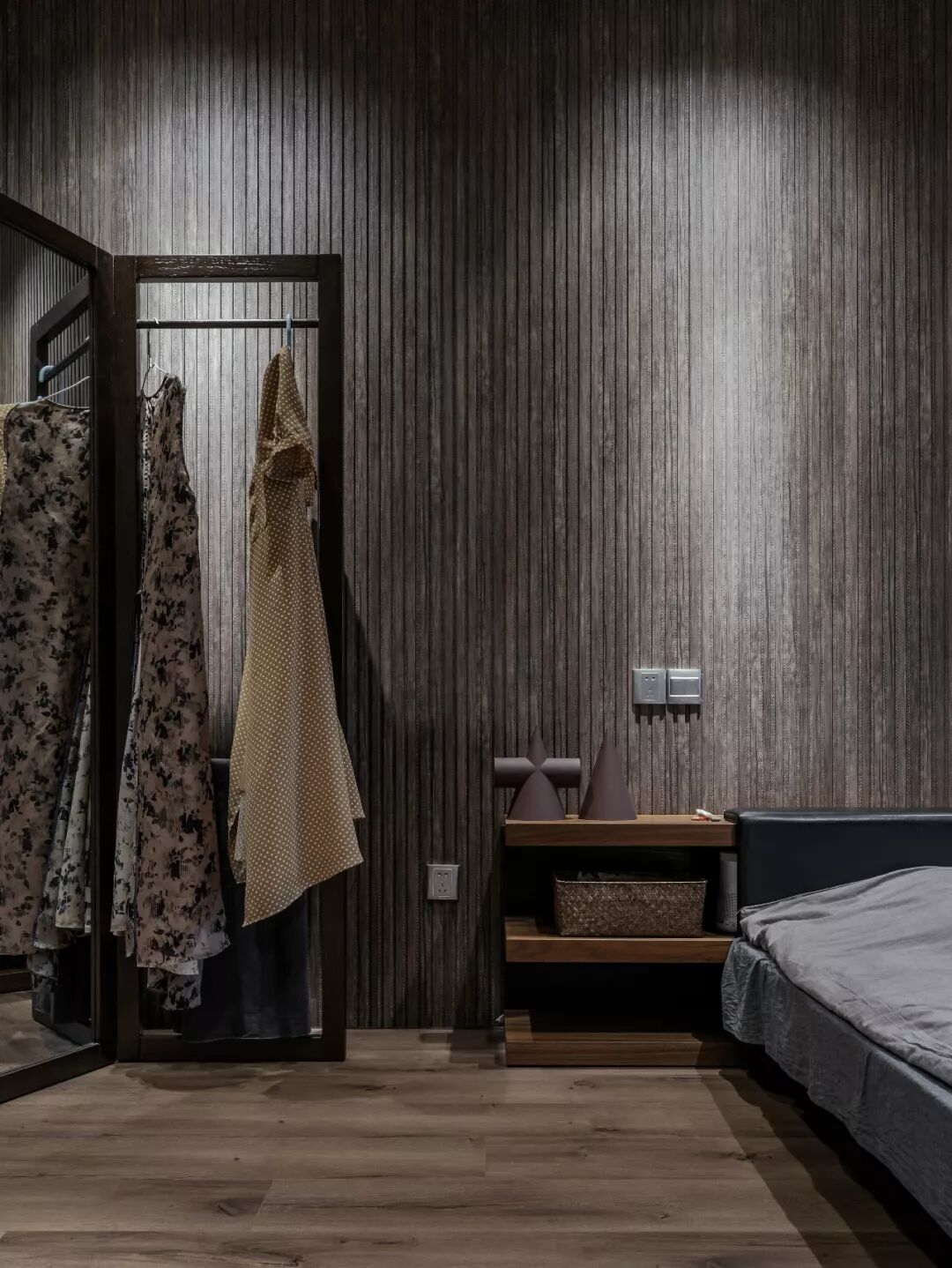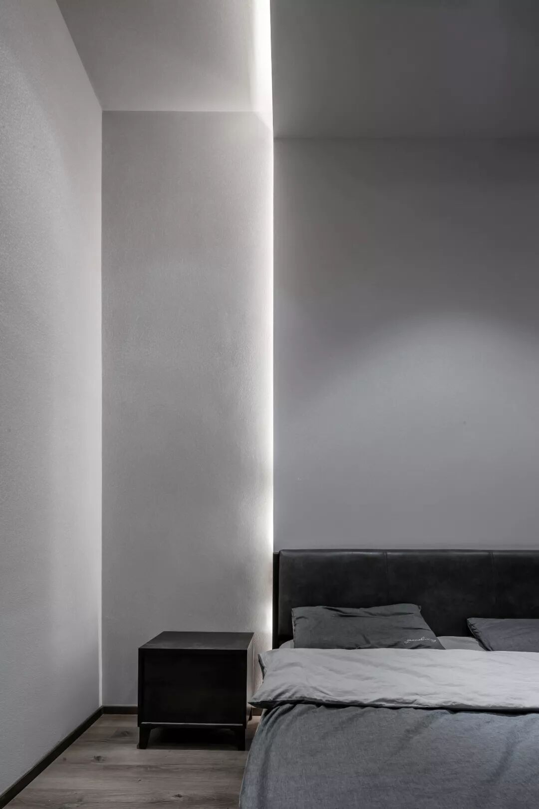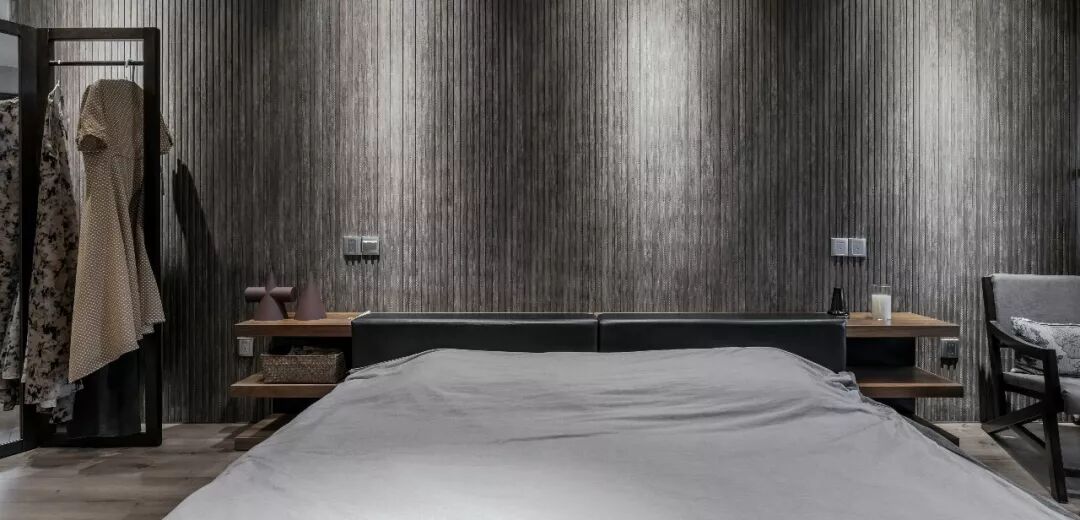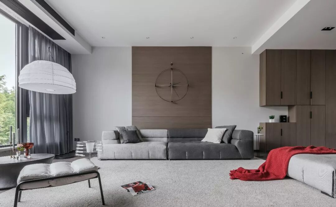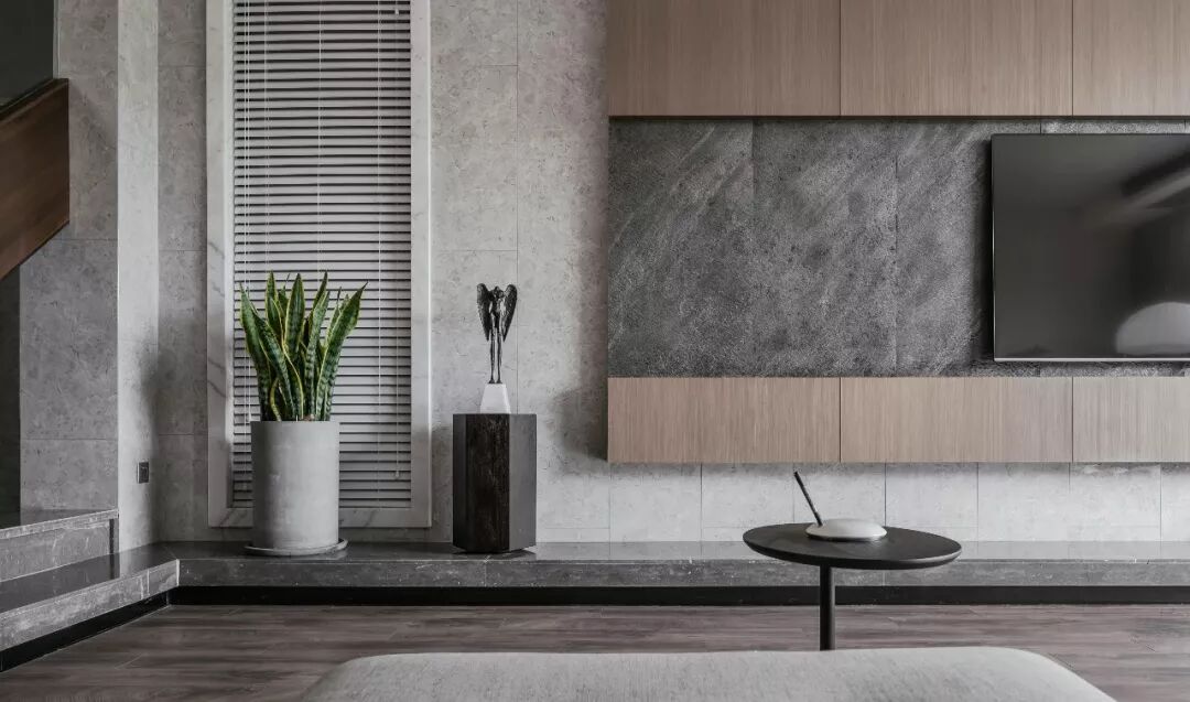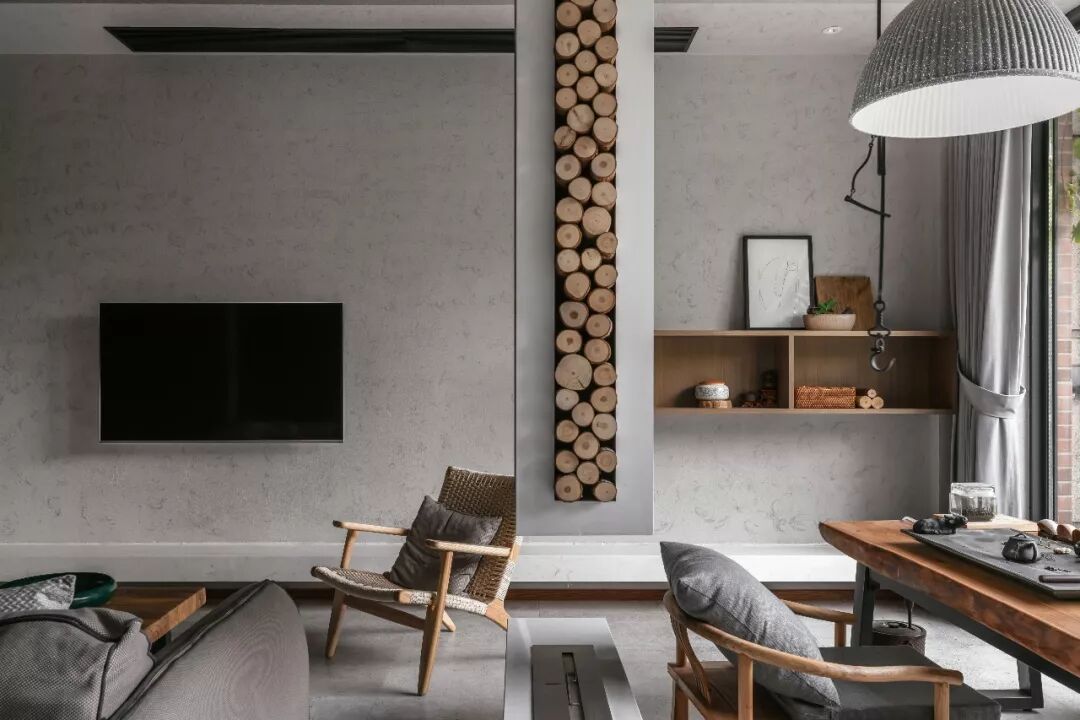 灰色创造了光洁简约的空间表面,再加入木作、布质家具,透过纹路、肌理散发出自然简约的侘静质感,整体画面保持纯净整洁,给业主生活增添素雅开阔的视野之美。