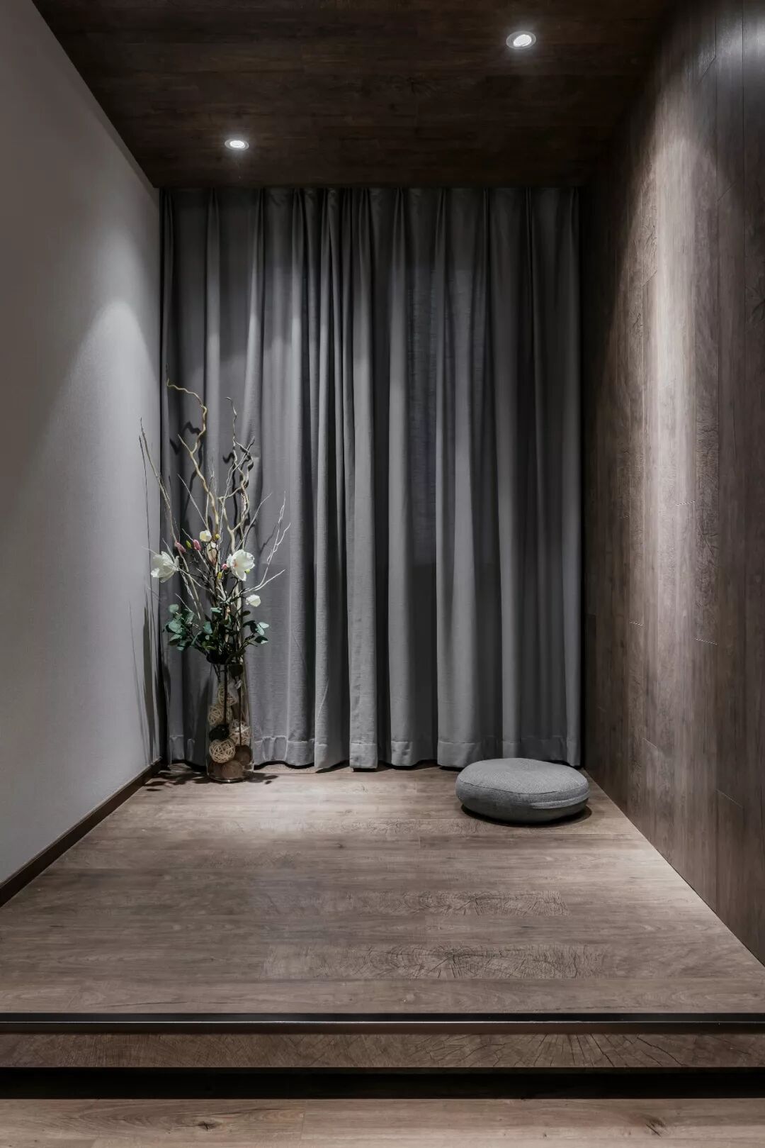 下层式的负一层空间,我们通过悬浮式的隔断,分割出茶室,通过落地玻璃将庭院景观融入茶室。品一茗茶,观光影挪移,体四季变化,纯粹感知空间的气息,在自然中悄然演绎,与平静有序的时光一同温存出风雅韵味惬意生活。